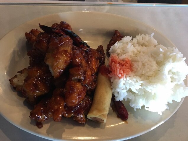 Their menu features a wide variety of Chinese dishes, including cashew chicken, sesame chicken, sweet-and-sour chicken, Sichuan beans, and Pad Thai. They also offer sushi rolls such as the Bomb and the Godzilla roll. For drinks, they have a selection of soft drinks, wines, and cocktails like the Mai Tai and the Singapore Sling.