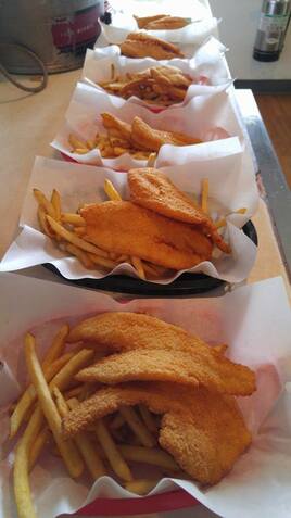 The fish is hand cut and battered daily! The tartar sauce is handmade and it is the best I have ever tasted! The clam chowder was phenomenal and the french fries were crispy and not soft and soggy and they were not salted but had lots of good flavor!